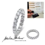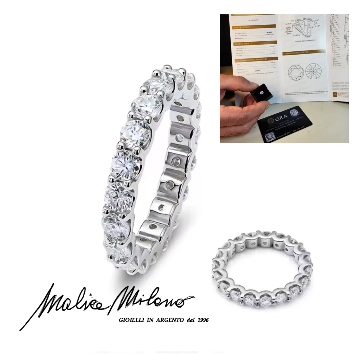Anello Classico donna. Fede in argento autentico e giro Diamanti in Moissanite