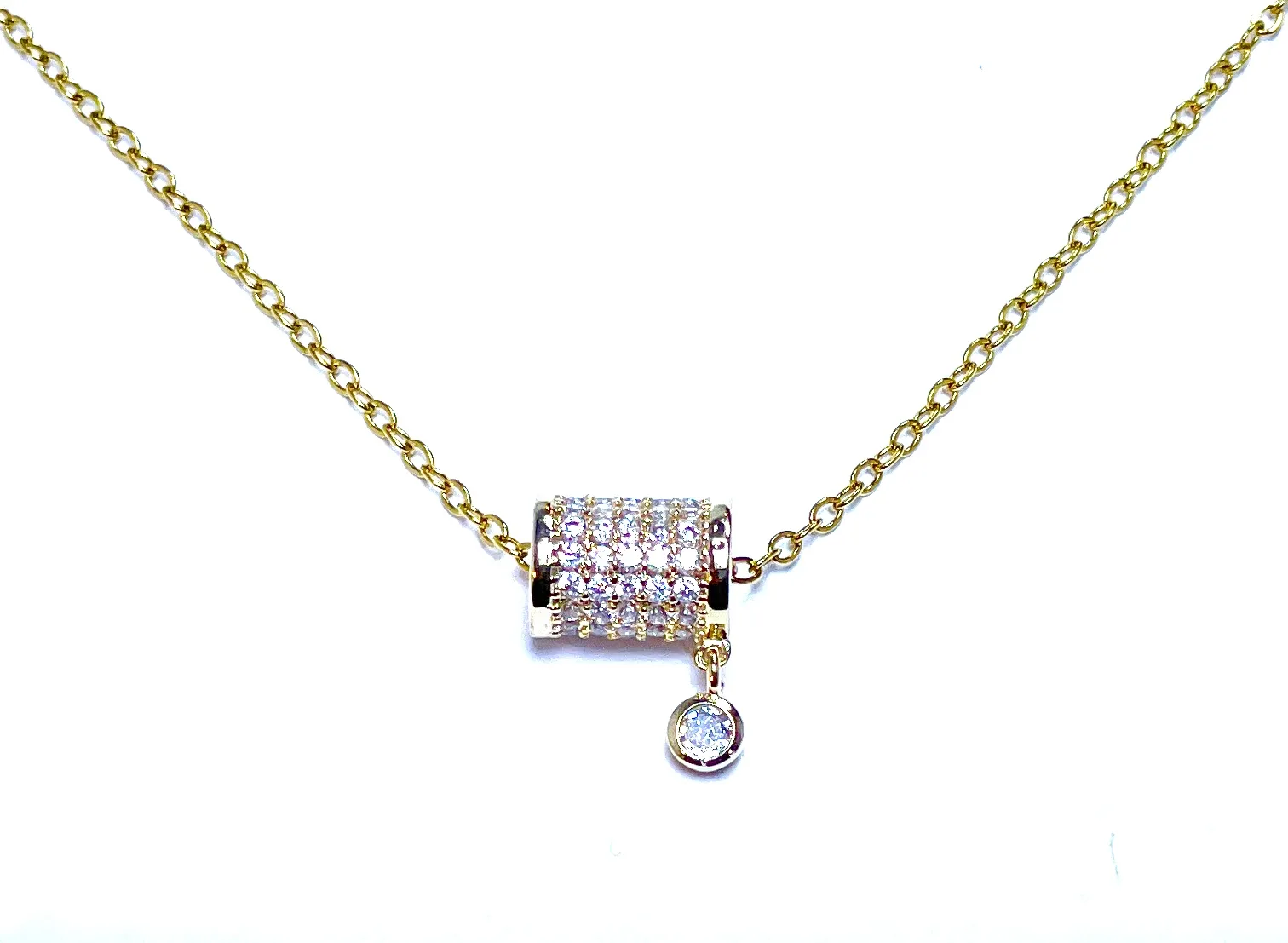 Girocollo con pendente centrale ” BAULETTO PAVE’ ” in acciaio dorato