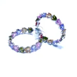 Orecchini a buco in metallo rodiato con cristalli colorati a forma di cuore colorati mm5x6 Diam, cm 3,5