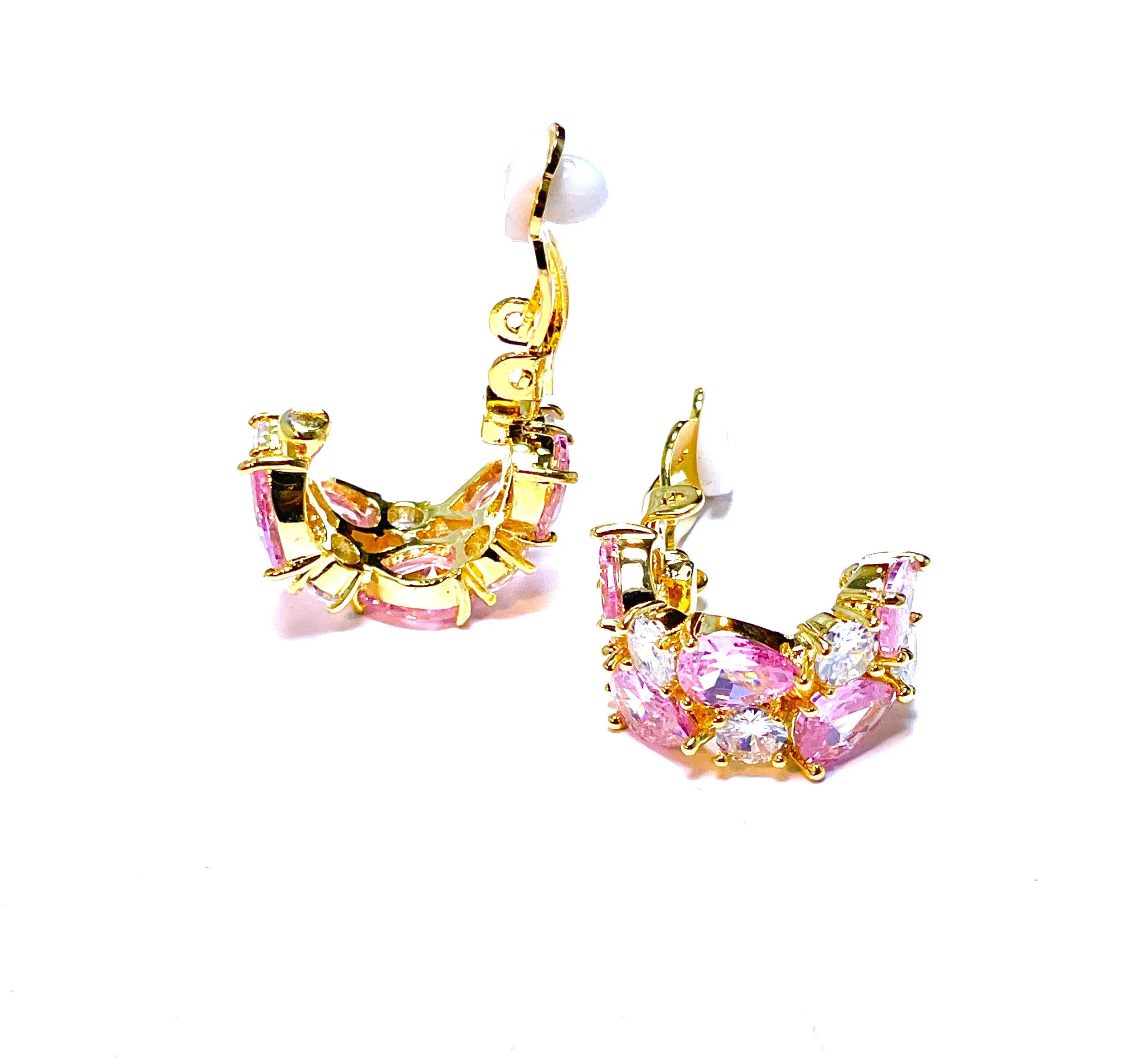 Orecchino a clips semicerchio con crstalli colorati su acciaio inox dorato
