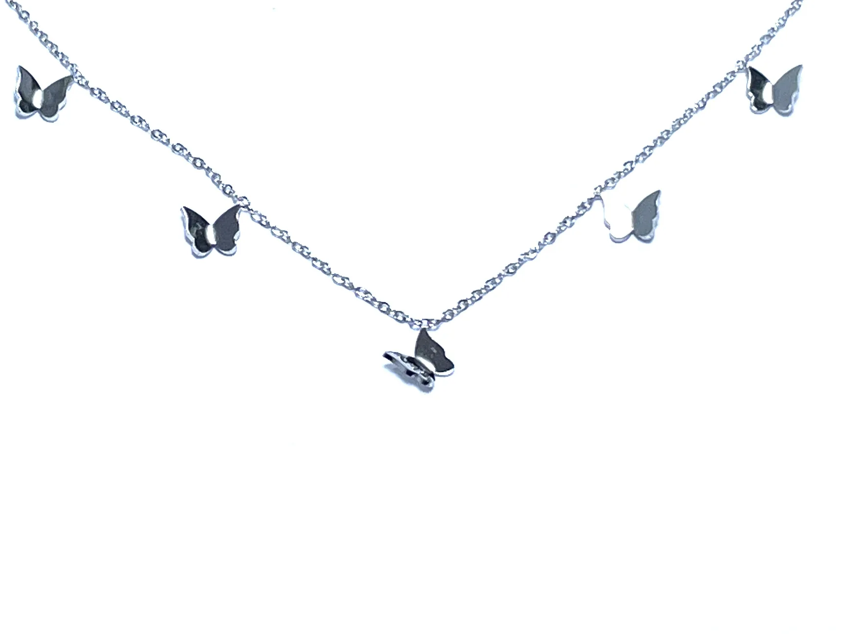 Girocollo in acciaio rodiato con pendenti farfalle mm 6×6