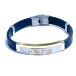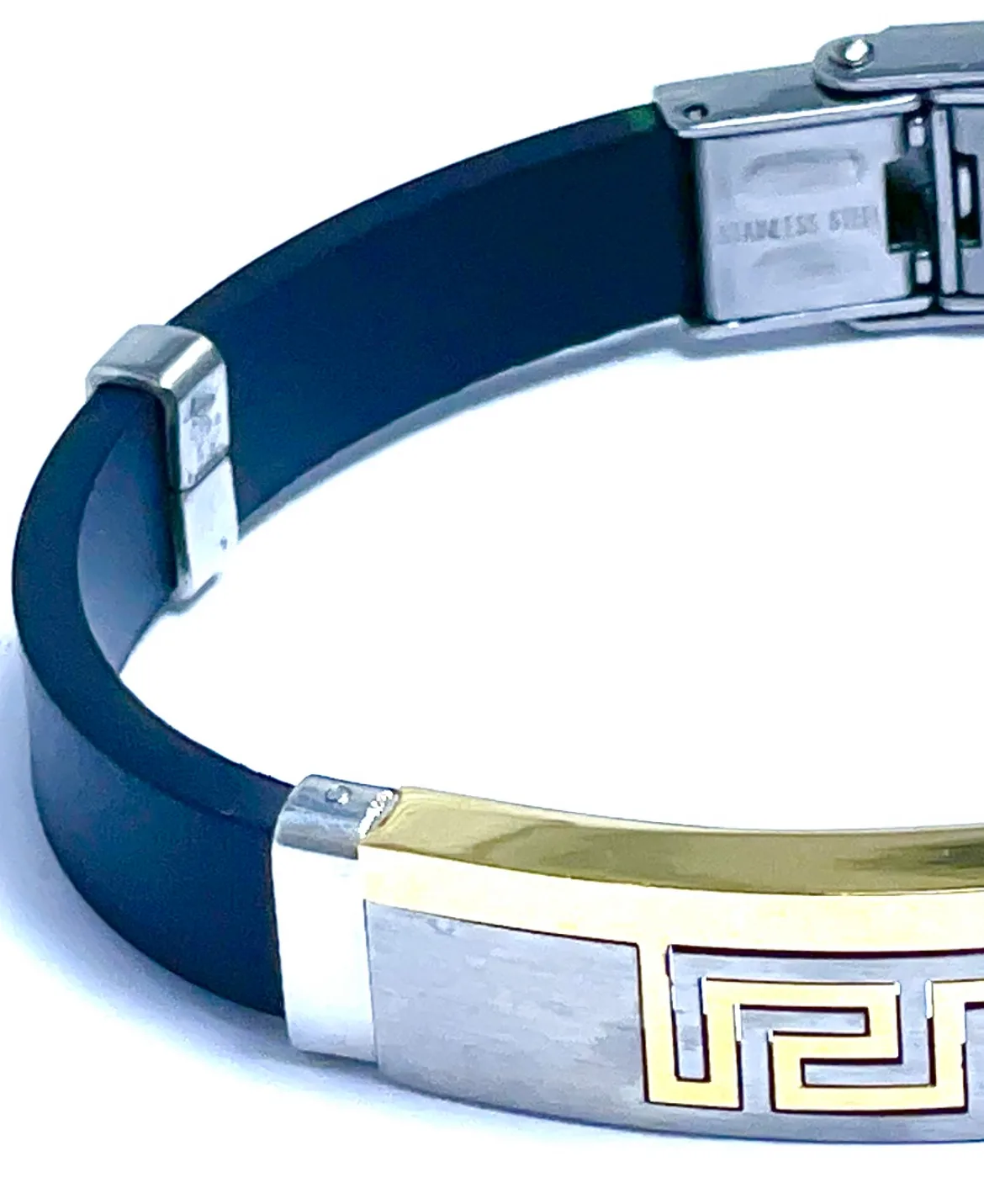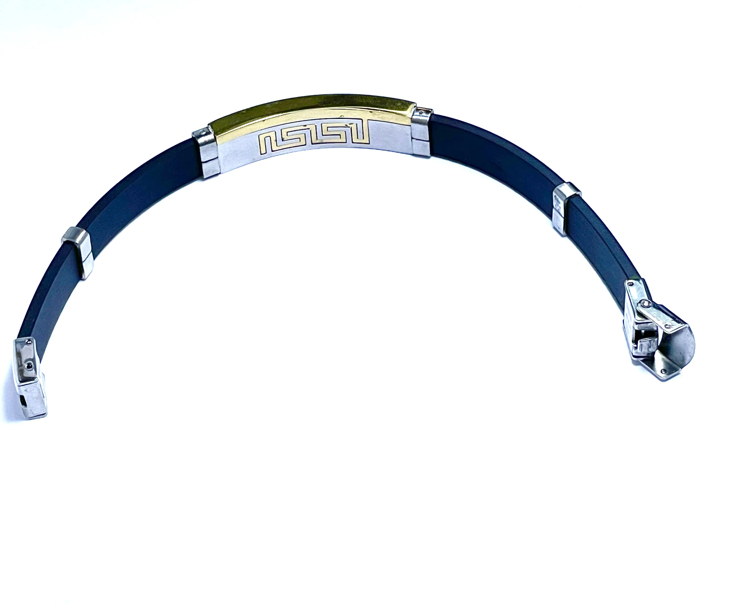 Bracciale uomo in caucciu’ e acciaio rodiato e dorato con particolare tipo greca
