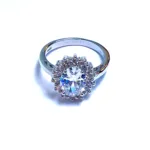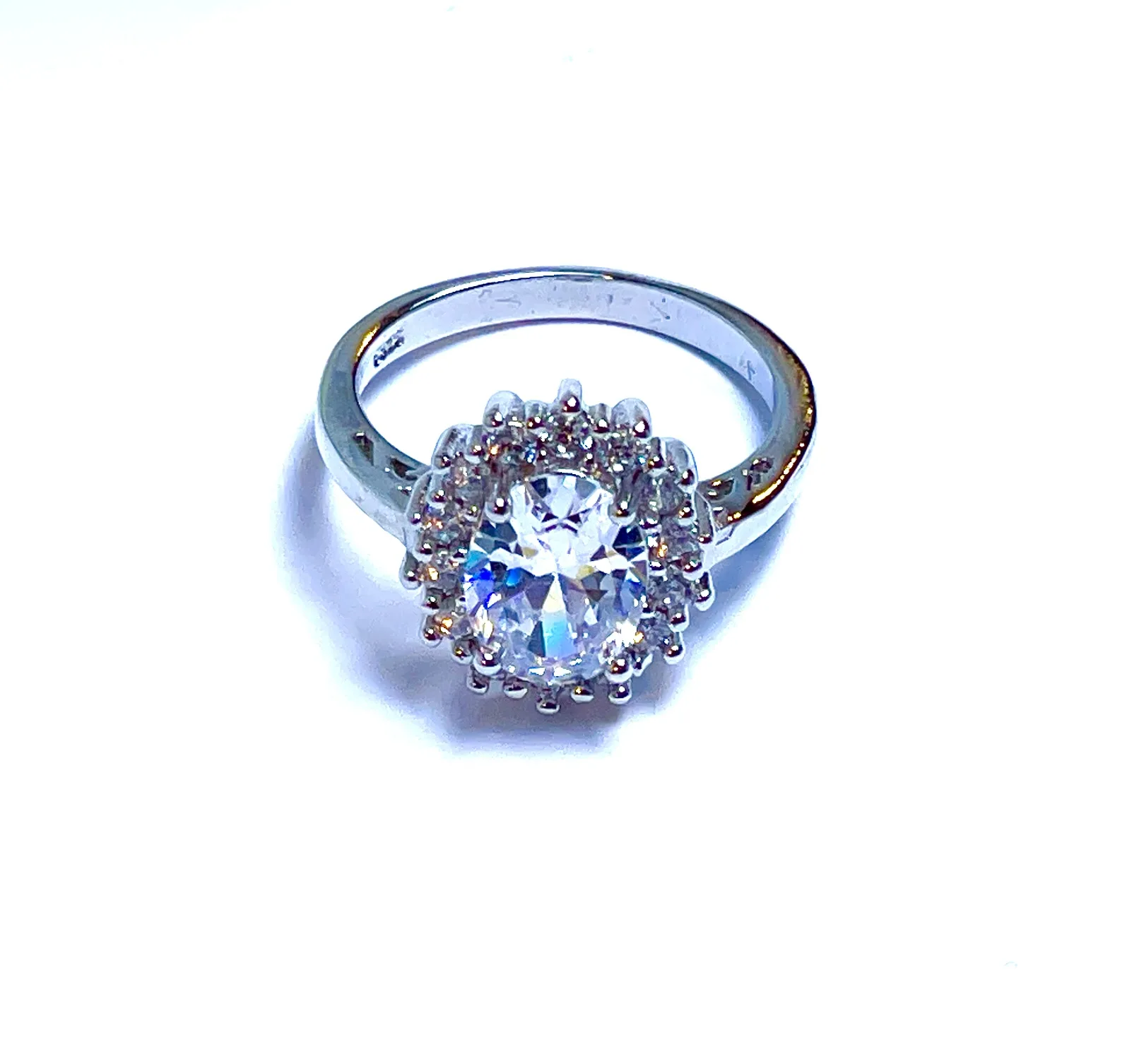 Anello donna argento autentico 925 rodiato – con Zircone centrale ovale mm 10×7 contornata da gemme cubic zirconia tipo fiore mm2x2