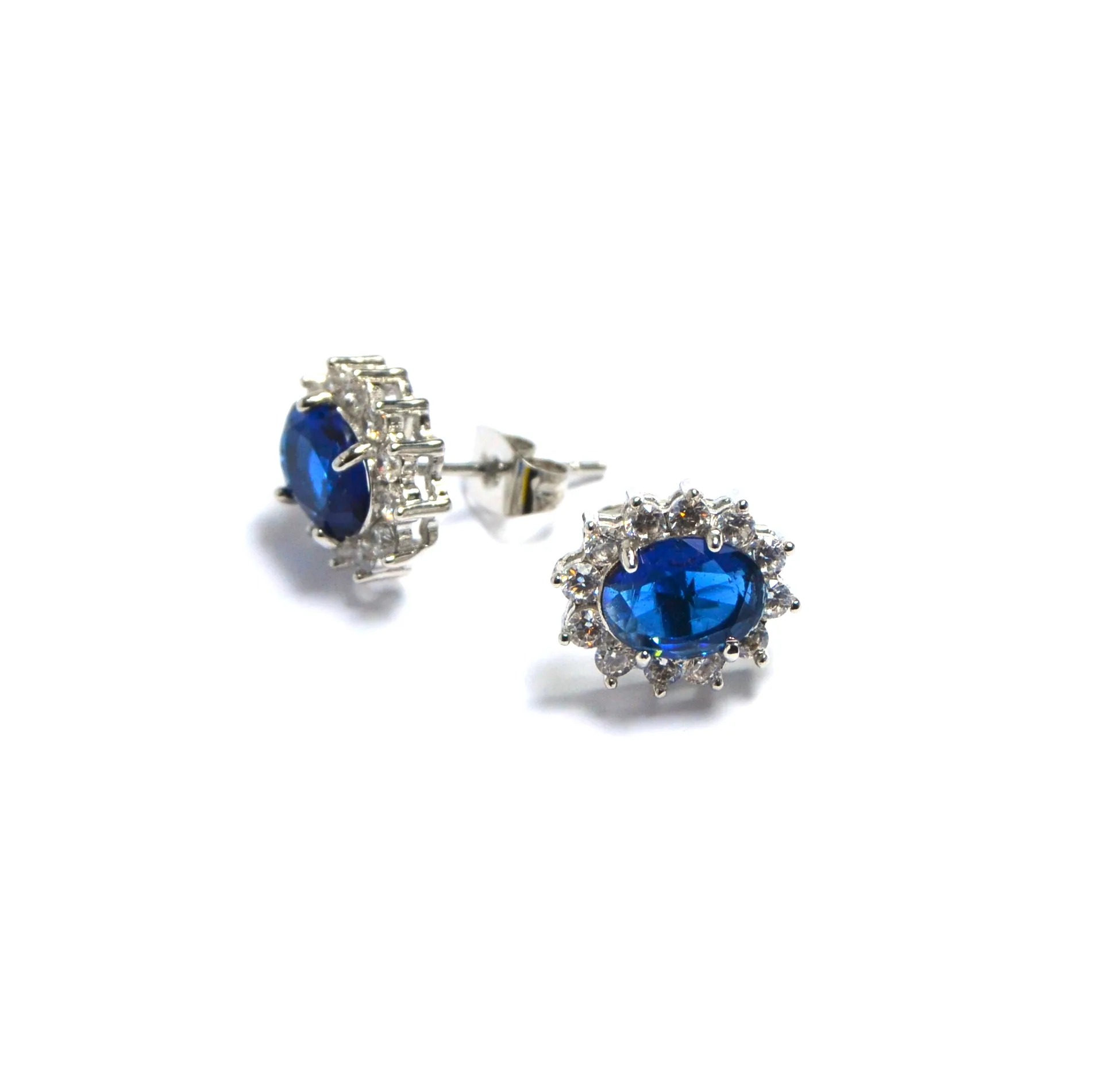 Orecchini in acciaio inox con cristallo ovale e gemme cz intorno