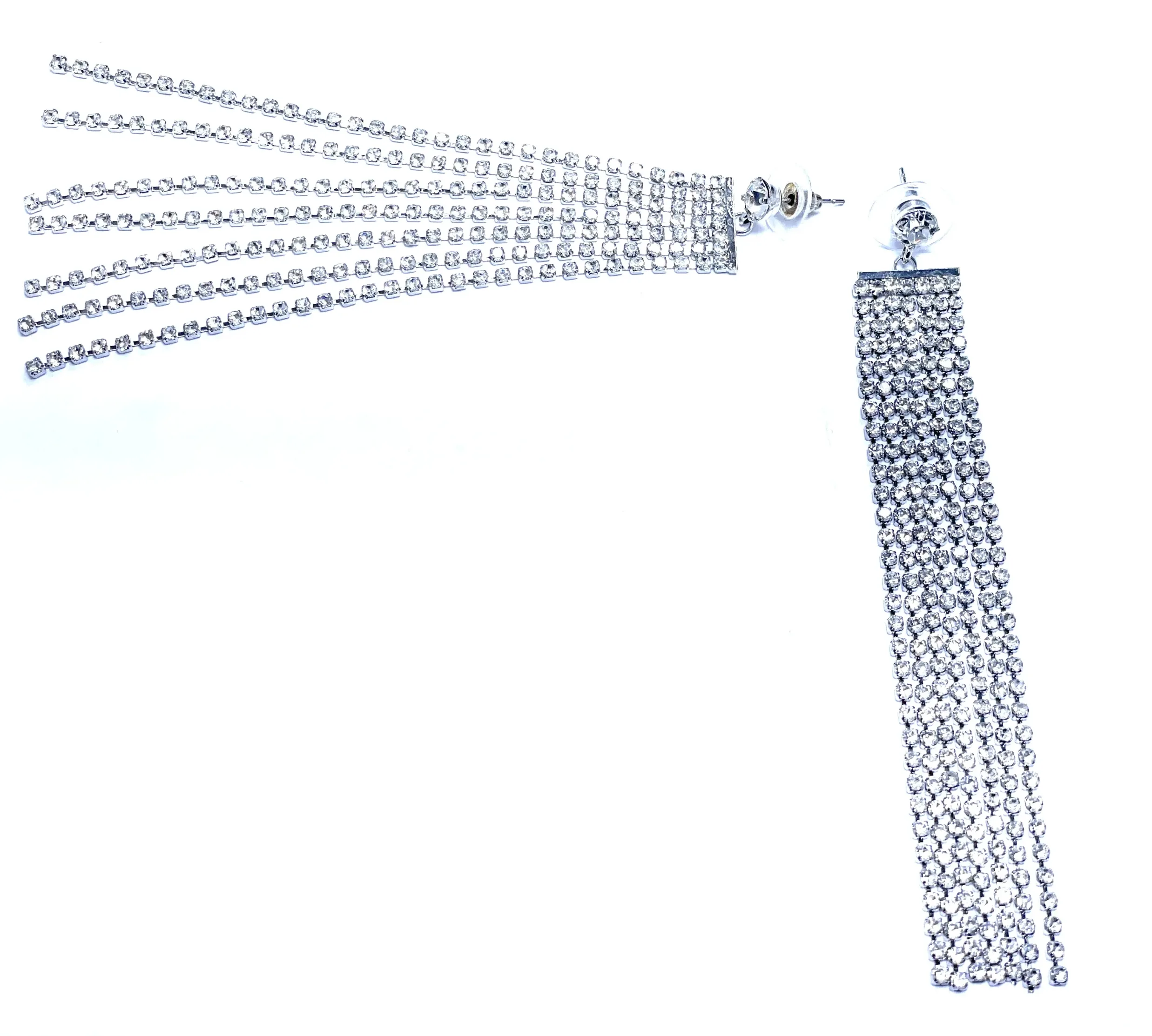 Orecchini a buco pendenti multifilo con cubic zirconia mm2x2 su base metallo rodiato lunghezza cm 11