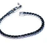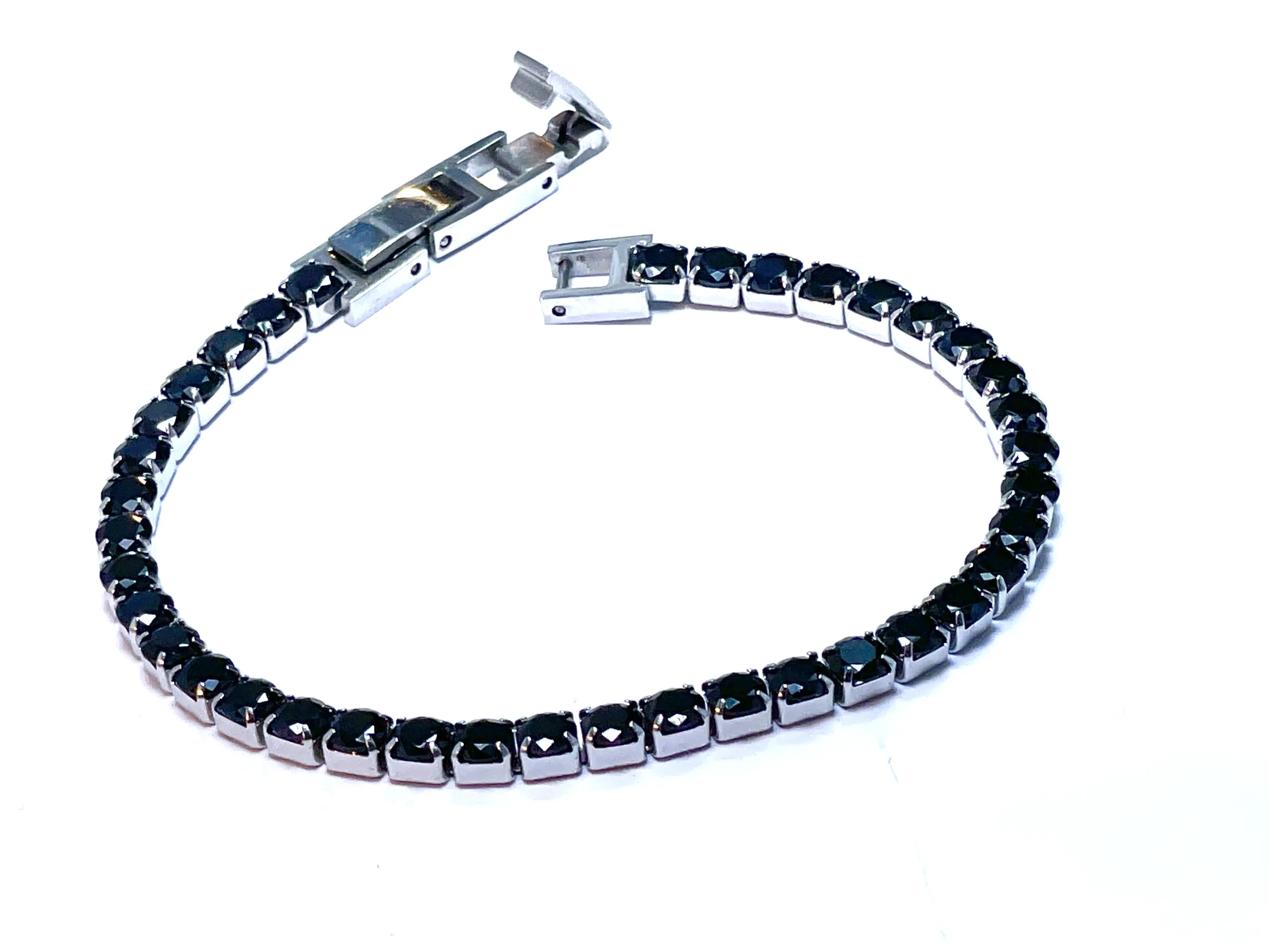 Bracciale Tennis onice nera in acciaio inox rodiato