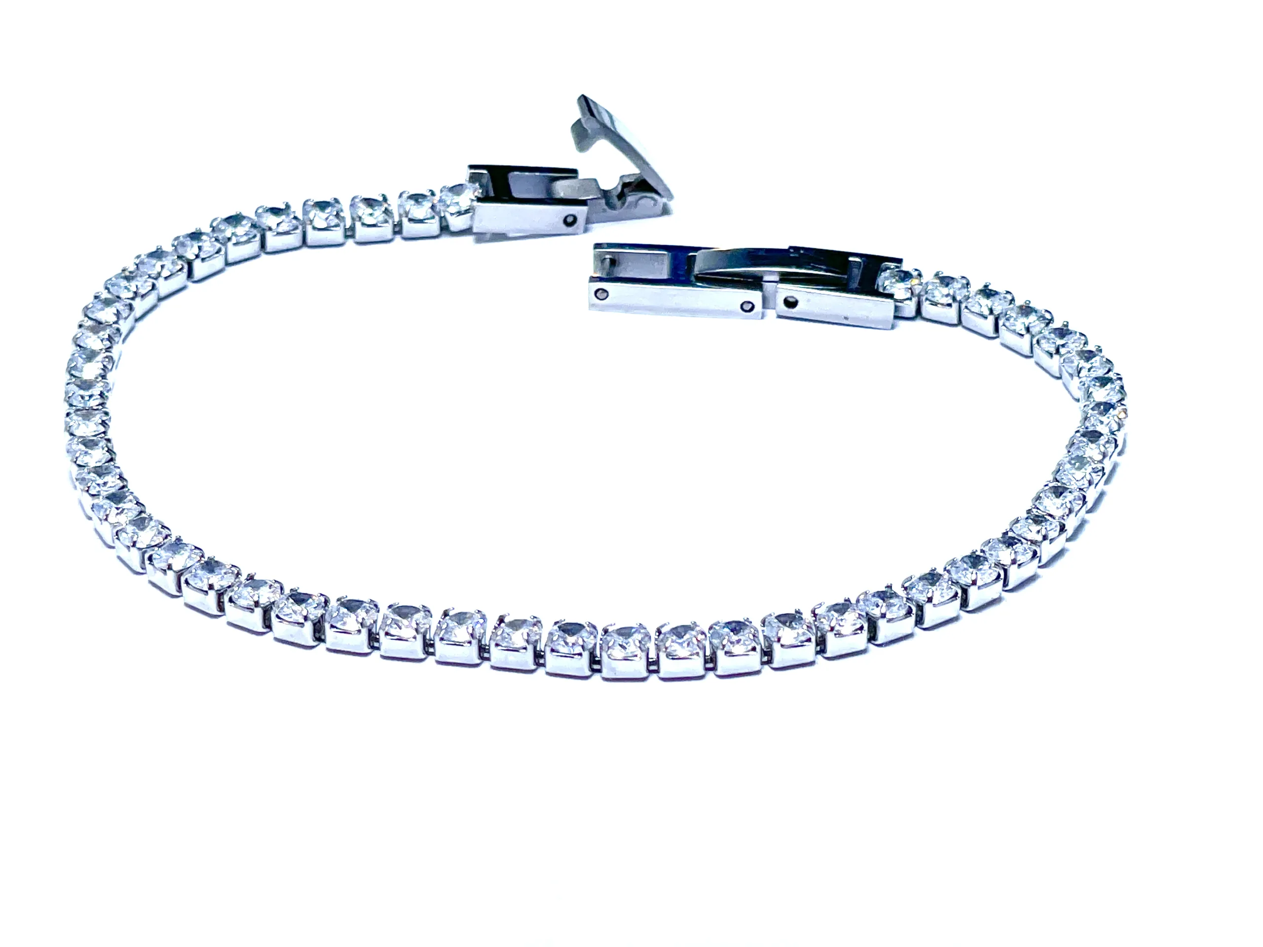 Bracciale tennis in acciaio inox rodiato gemme in zirconia mm 2